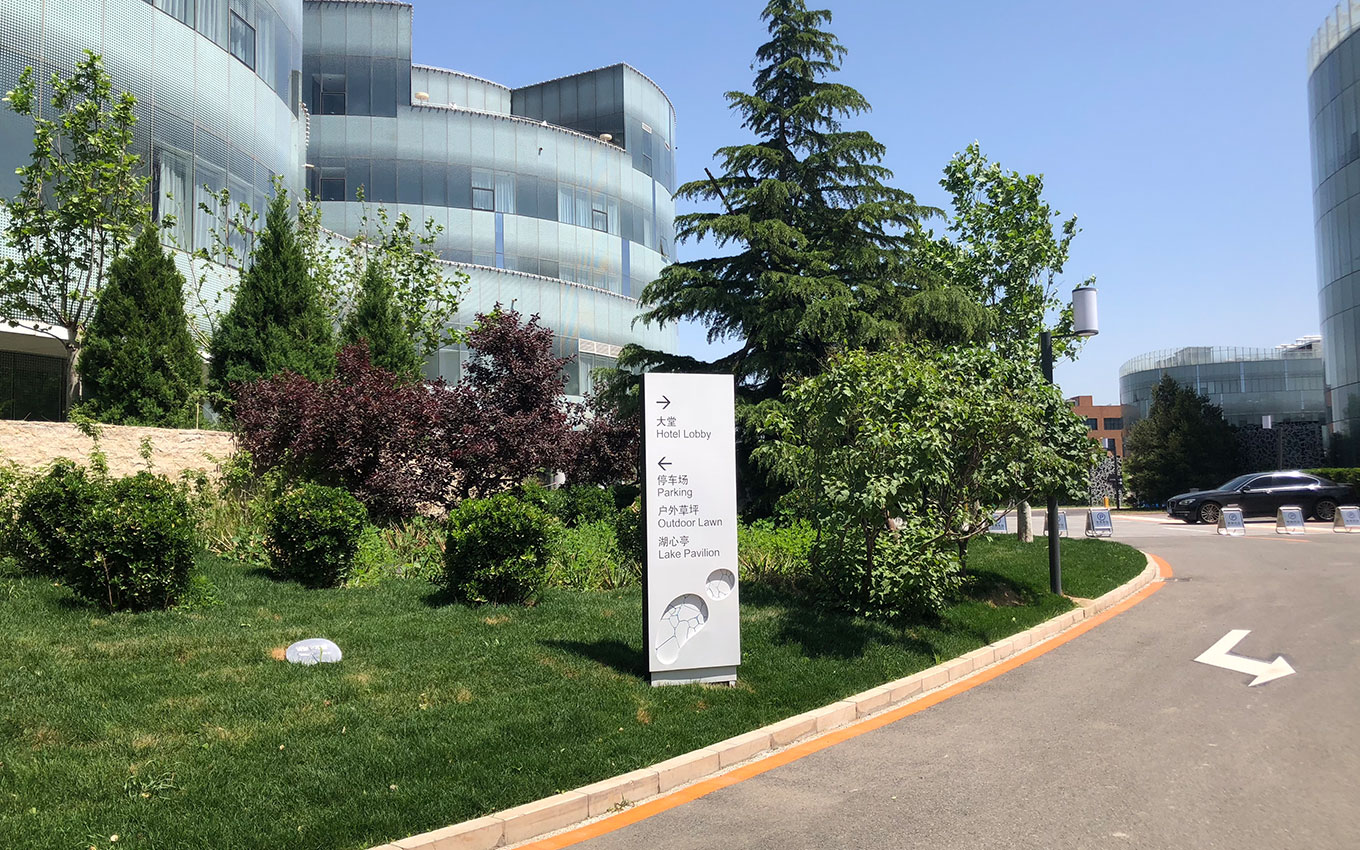 中关村生命科学园,生命的意义、生命的含义、生命的DNA,全世界唯一一家以生命为主题的酒店导视设计,整体设计以生命的裂变过程、生命的旅程、生命敬畏设计灵感,源于显微镜下生命的微妙变化历程,遵循秩序的元素来创意。环境优美,鸟语花香、并配有湖心亭,户外草坪等特色区域。