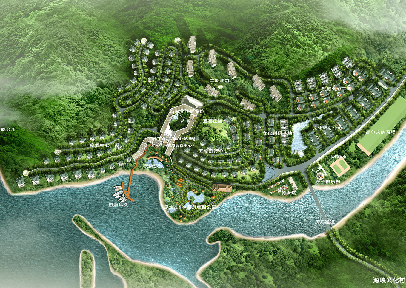 【海峡文化村】这个项目的导视系统设计介绍,项目背依森林苍翠之北峰,面向波光粼粼之鳌江,潺潺西溪绕村而过,优质温泉闻名遐迩,且与国际标准18洞温泉高尔夫球场一路之隔,与西溪国家森林公园遥遥相望,堪称休闲旅游度假之首选。