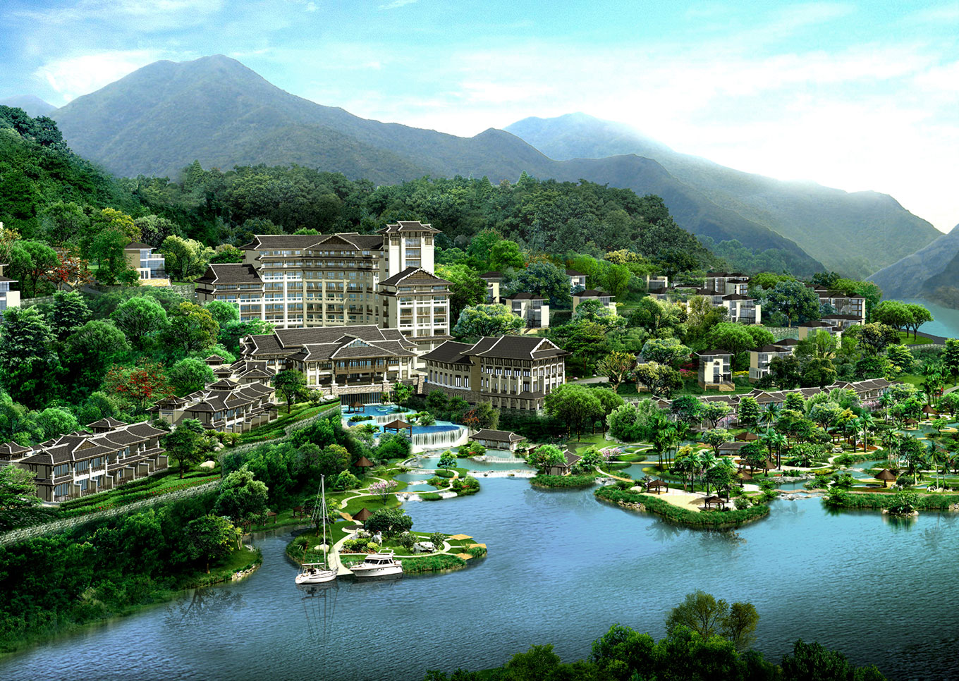 福州海峡文化村度假景区项目位于福建省福州市贵安温泉旅游度假区东侧,地处古碑曰“青甲池”之境。南北长1000米,东西宽约450米,北临敖江,南侧有西溪贯穿南北,东、南两面环山。